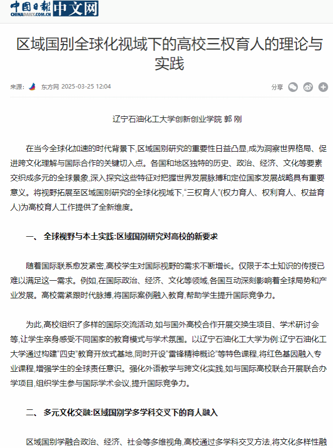中国日报网:区域国别全球化视域下的高校三权育人的理论与实践