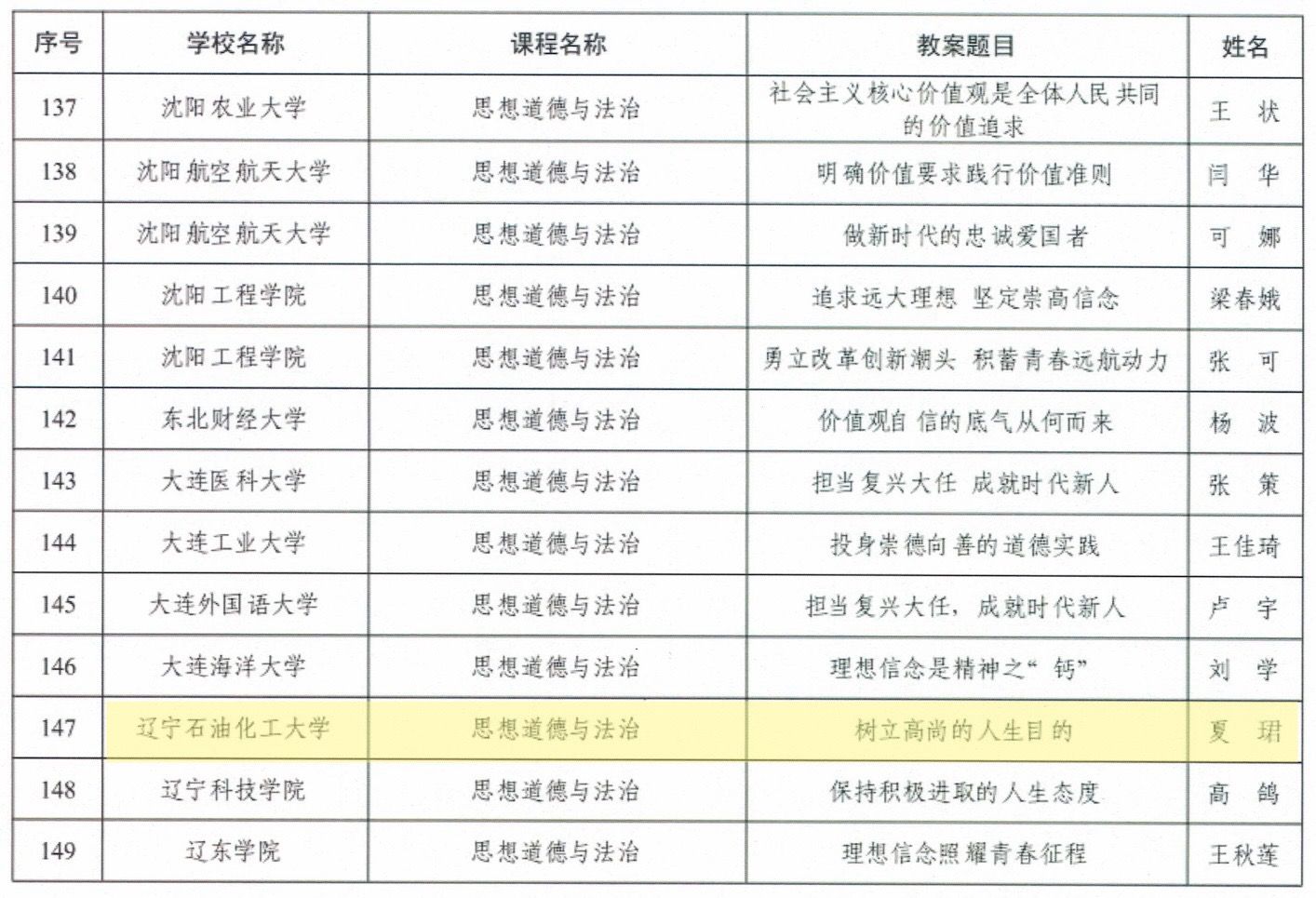 为充分发挥思政课落实立德树人根本任务的关键课程作用,全面提升高校思政课教学质量和水平,辽宁省教育厅举办了“辽宁省高校思想政治理论课精品教案评选”活动。